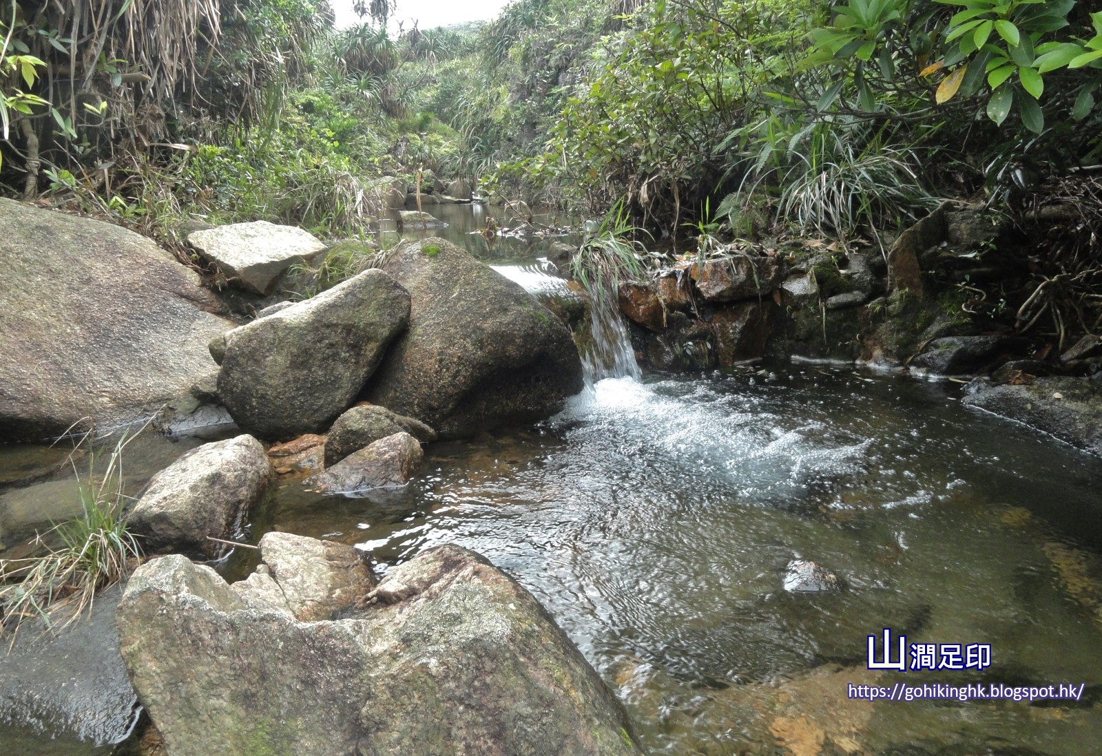 一半行程後,河道收窄成坑流,落差較高,兩旁植物阻途,但仍可通︰
