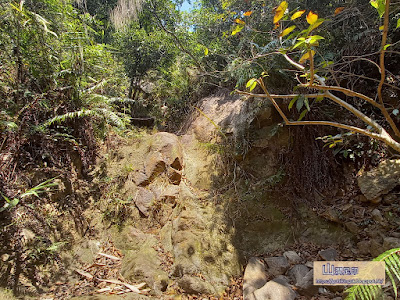 從此不斷攀走岩坡、石脊或攀爬大石高落差、避深坑,每處攀爬位置不盡相同,也不能盡錄︰