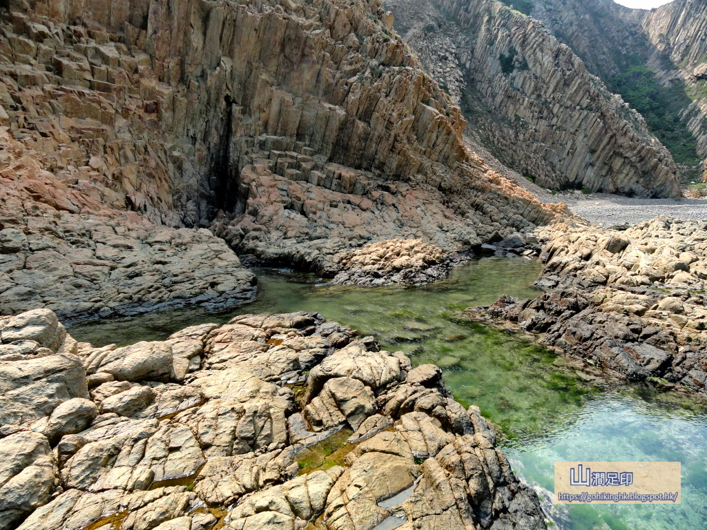 小石灘後的六角柱石海岸